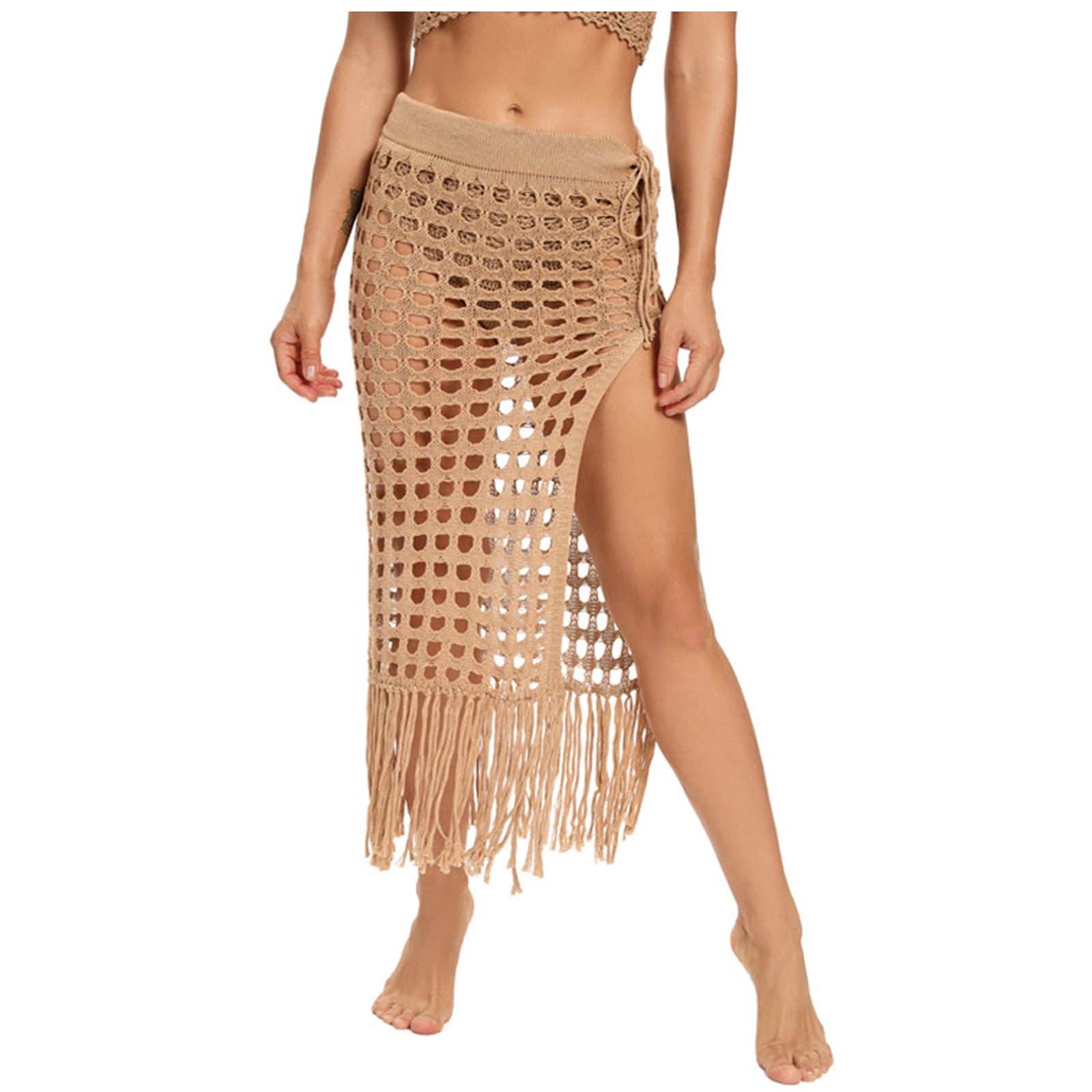 Women S Sexy Sheer Maxi Knit Skirt Tassel Beach Summer Crochet Cover Up Skirts Split Side Walmart Com